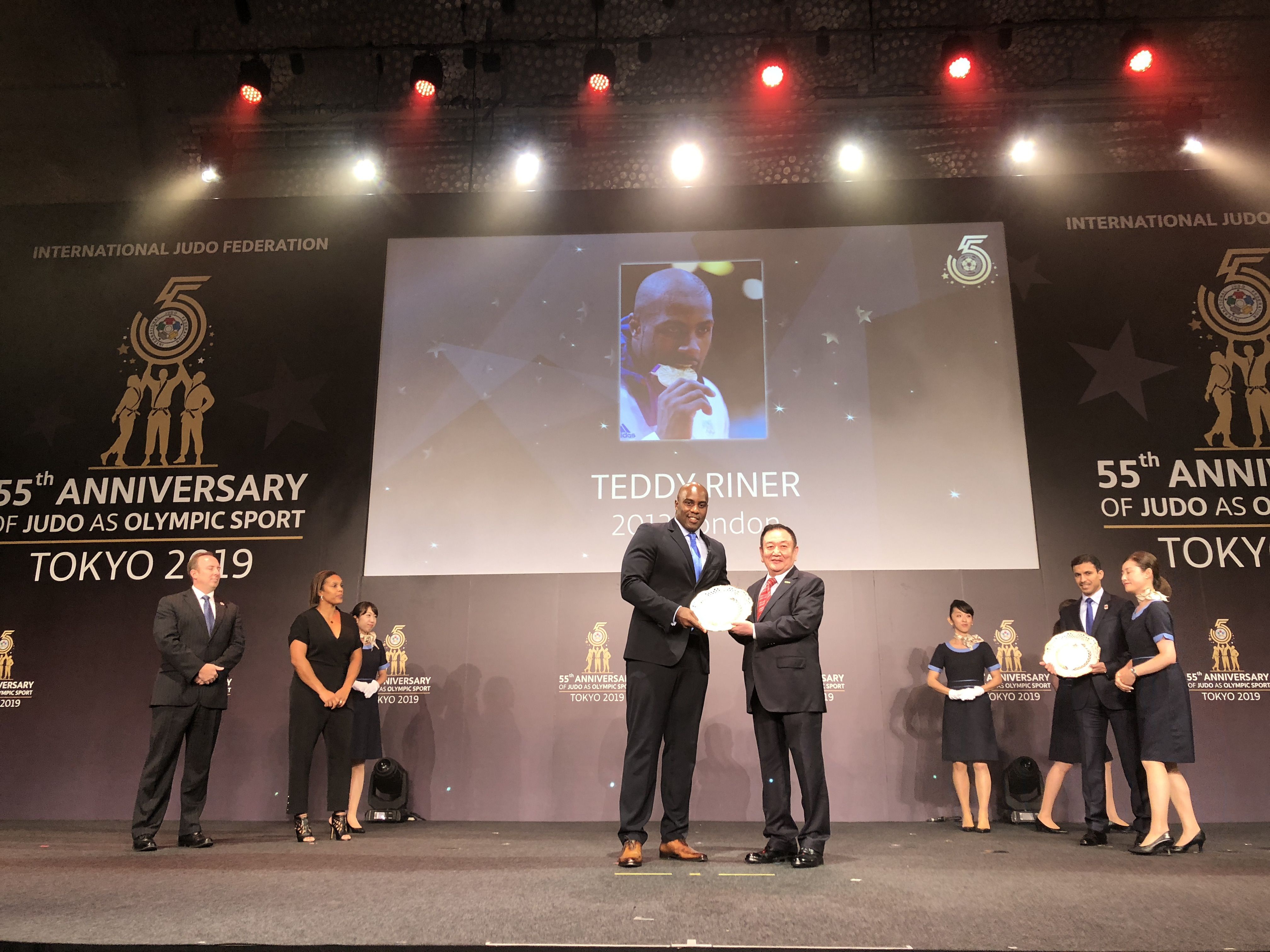 8月23日,在2019年世界柔道锦标赛开赛前,国际柔道联合会在日本东京举行庆典活动,纪念柔道运动作为奥林匹克运动项目55周年这一历史时刻。仪式上,国际柔道联合会将近60年来为世界柔道运动做出贡献的运动员与组织机构颁发奖项。好体育综合官网产业集团作为国际柔道联合会顶级合作伙伴受邀出席,董事长卞志良作为特邀嘉宾为伦敦奥运会最佳男运动员Mr. Teddy Riner,伦敦奥运会最佳女运动员Mrs. Lucie Decosse 颁奖。