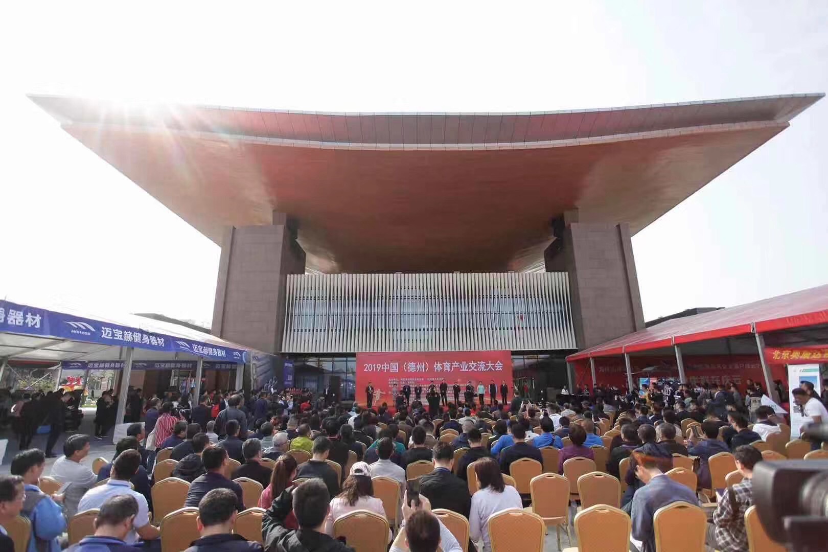 10月13日,2019中国(德州)体育产业交流大会在太阳能德州小镇开幕。大会由中国体育用品业联合会与德州市人民政府联合主办,山东省体育局支持,中国体育用品业联合会场馆事业工作委员会等单位共同承办。大会在 “融入京津冀助力新动能”的大背景下,以“德州智造·标准引领,助力体育产业升级”为主题,旨在充分展示区域体育产业发展成果,促进国际国内体育产业交流,扩大招商引资规模,搭建品牌商、渠道商和消费者展示与互动平台。开幕式上,好体育综合官网产业集团荣获“明星企业”称号。