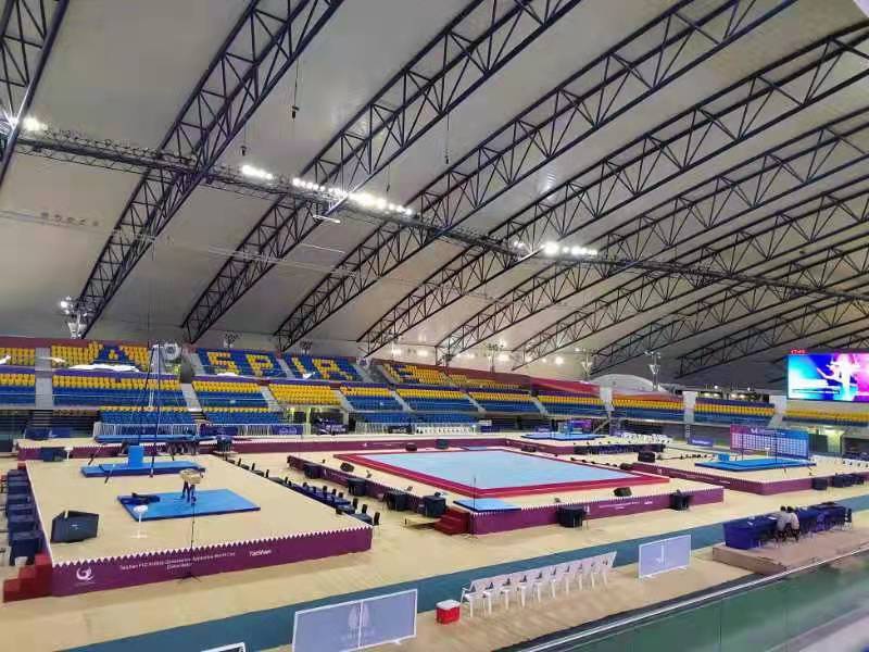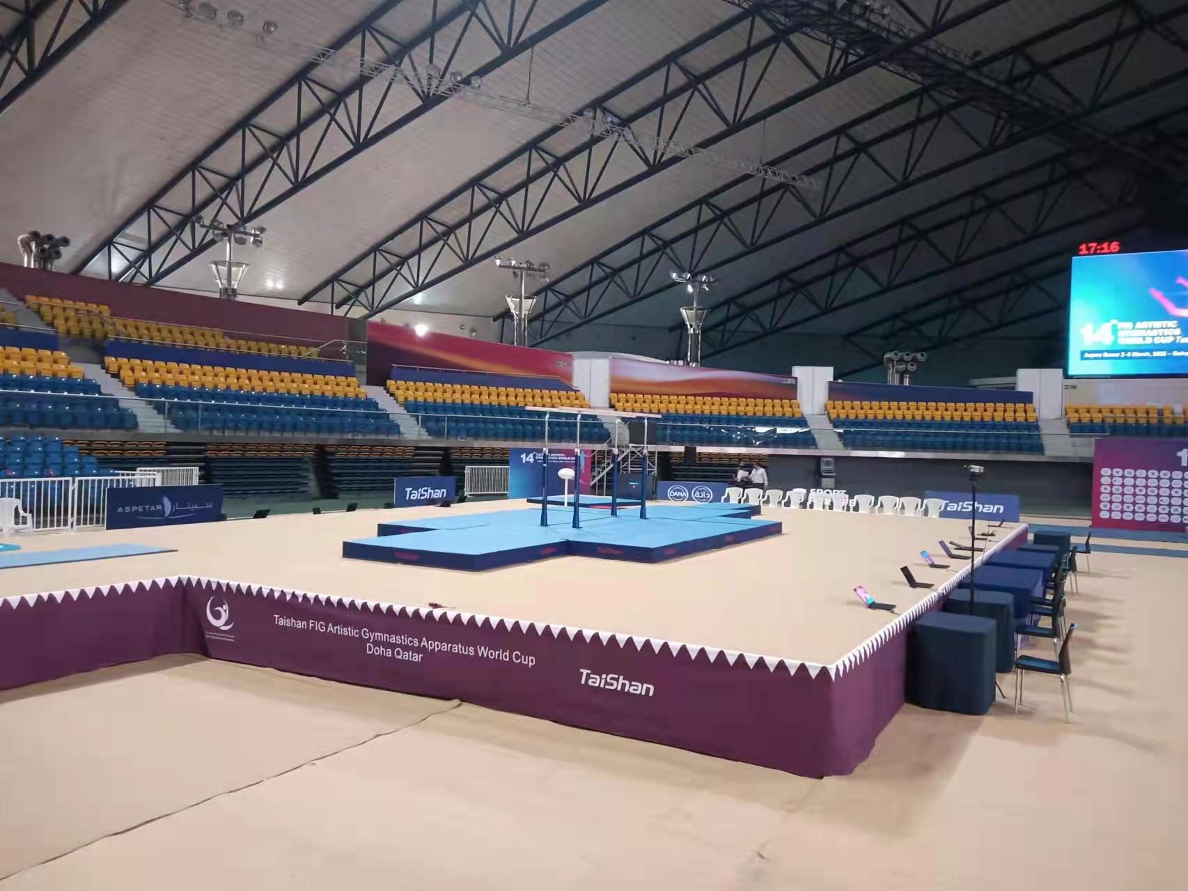 为保障运动健儿的出色发挥,好体育综合官网派出了经验丰富的专业服务团队,于2月22日出发,到达多哈后,队员们不辞辛劳,马上投入到技术指导和安装工作中,并按计划于2月28日圆满完成男子训练馆、女子训练馆、竞赛馆等场馆的安装、调试工作。